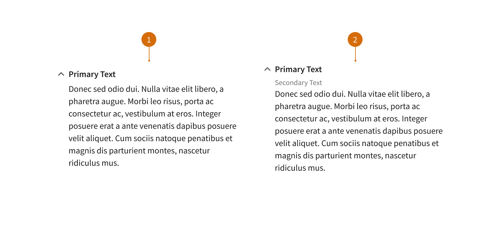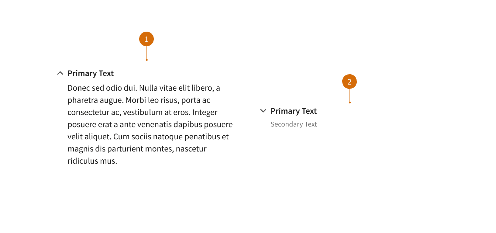 The primary text should inform the user about what they will find in the accordion. It should be short and to-the-point. Use title case.