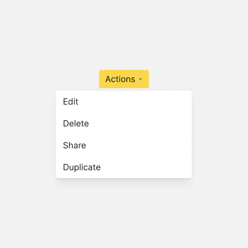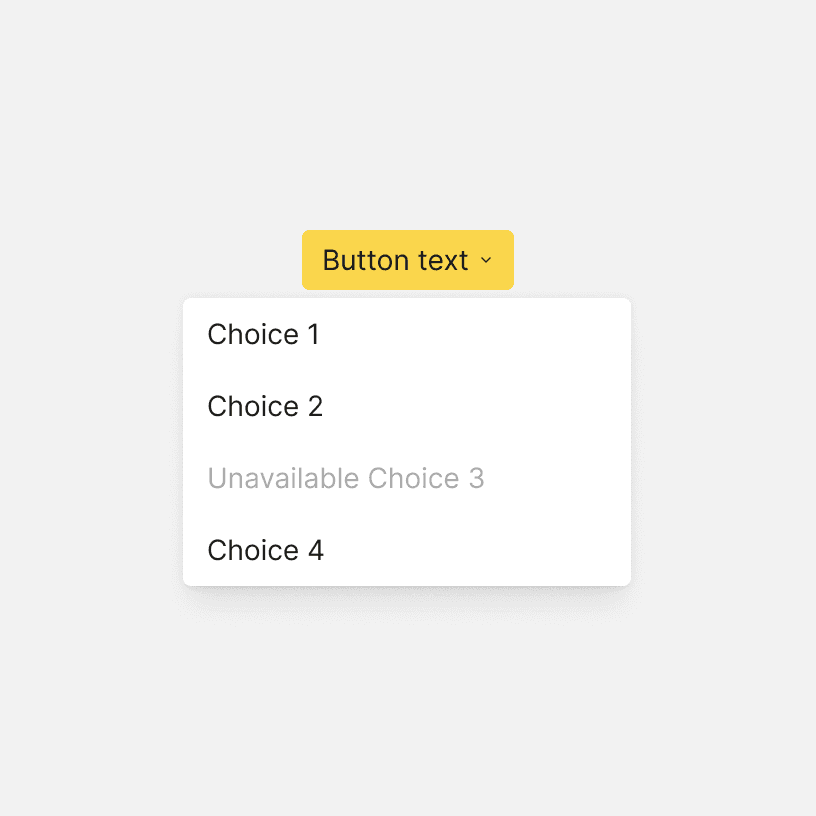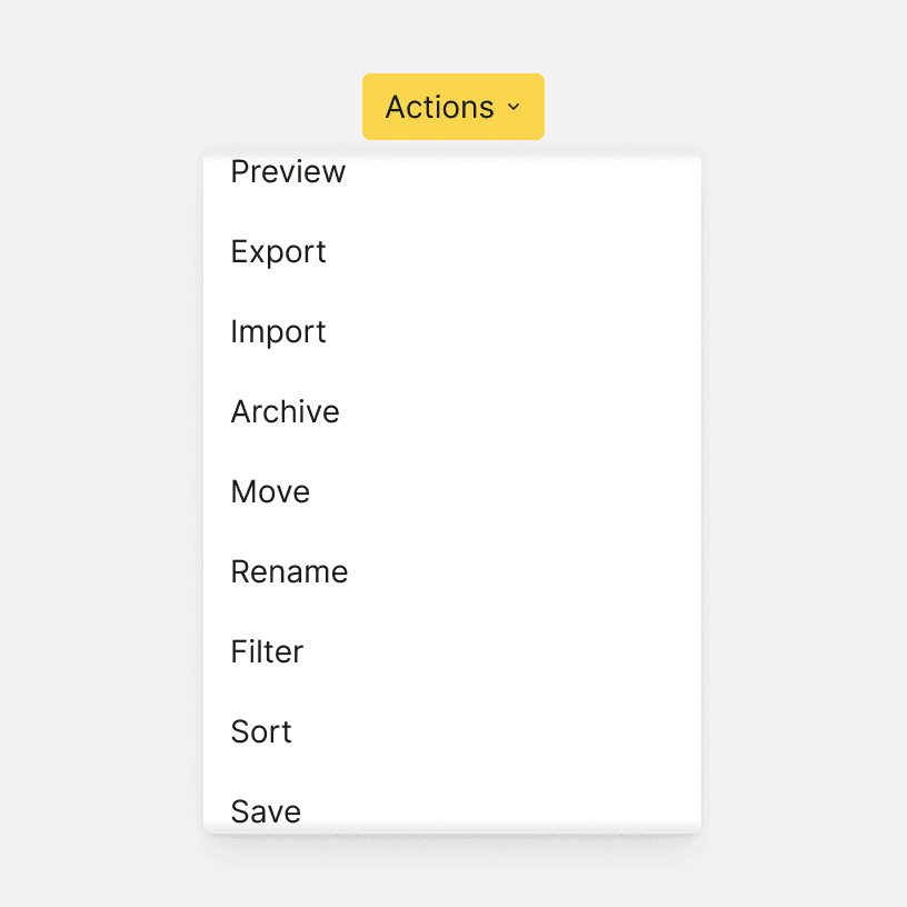 Dropdown menu items should be short and written using parallel construction. For example, every item should be a noun or a verb. Avoid repeating words if possible.