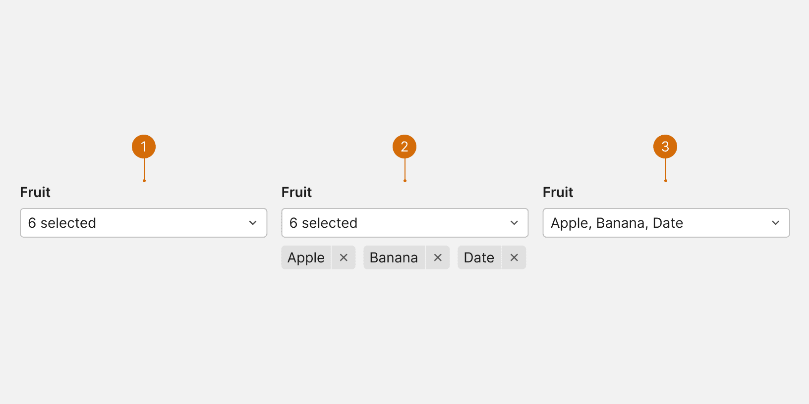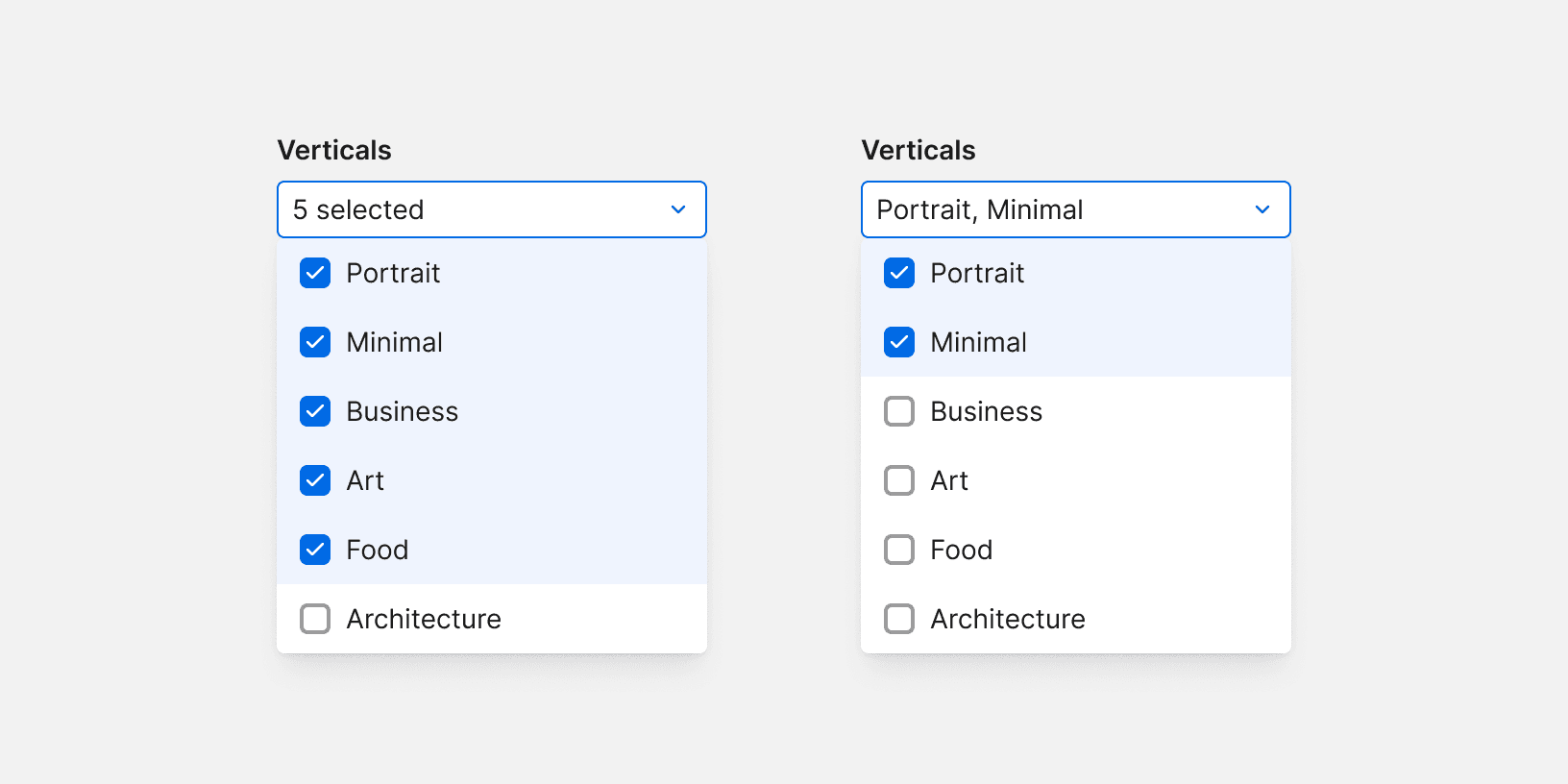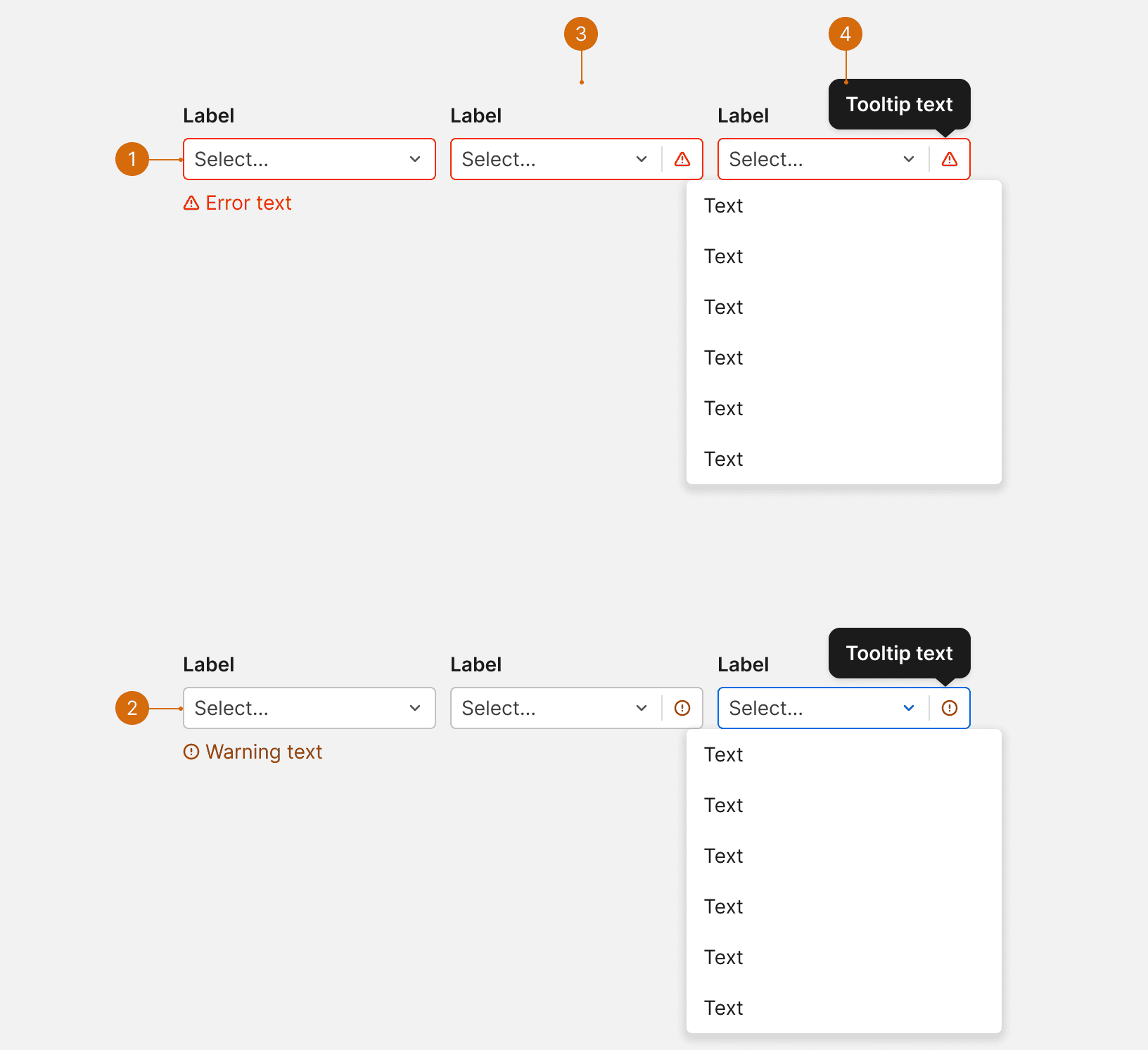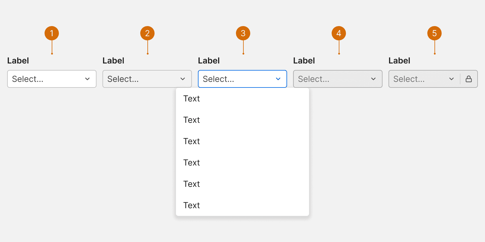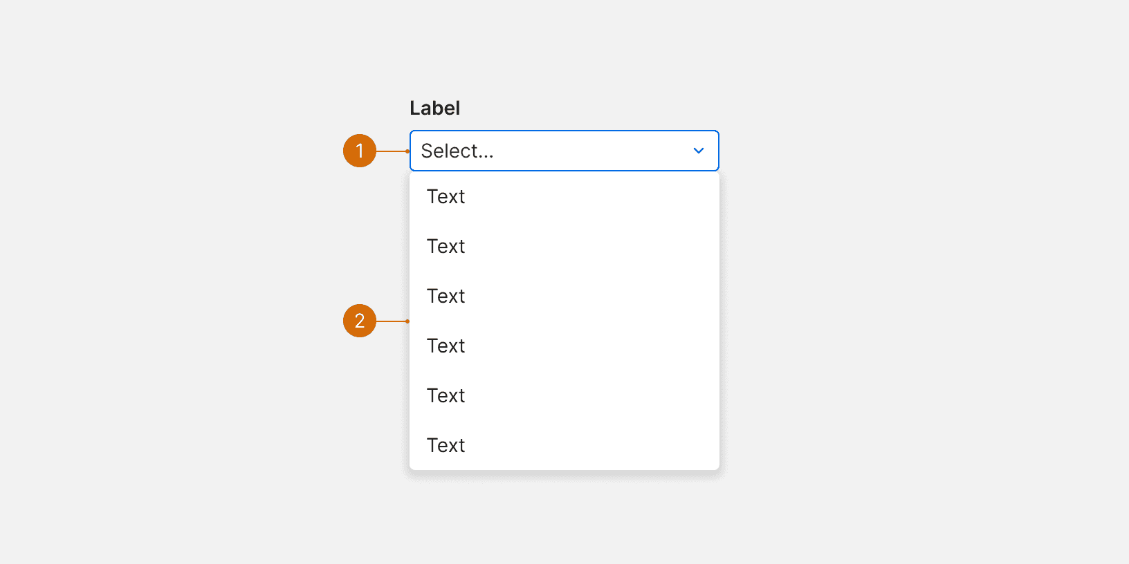 Include placeholder text that indicates the type of options in the menu.² Placeholder text should not function as the label. Use verb phrases for placeholder text.