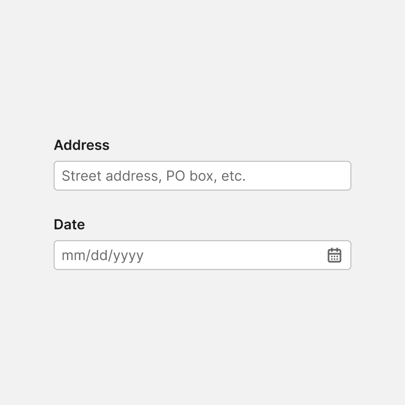 Placeholder input text can provide instructions, examples, or additional information about what sort of content they can enter in the field. For example, the expected or accepted format, or what sort of keywords can be searched for.