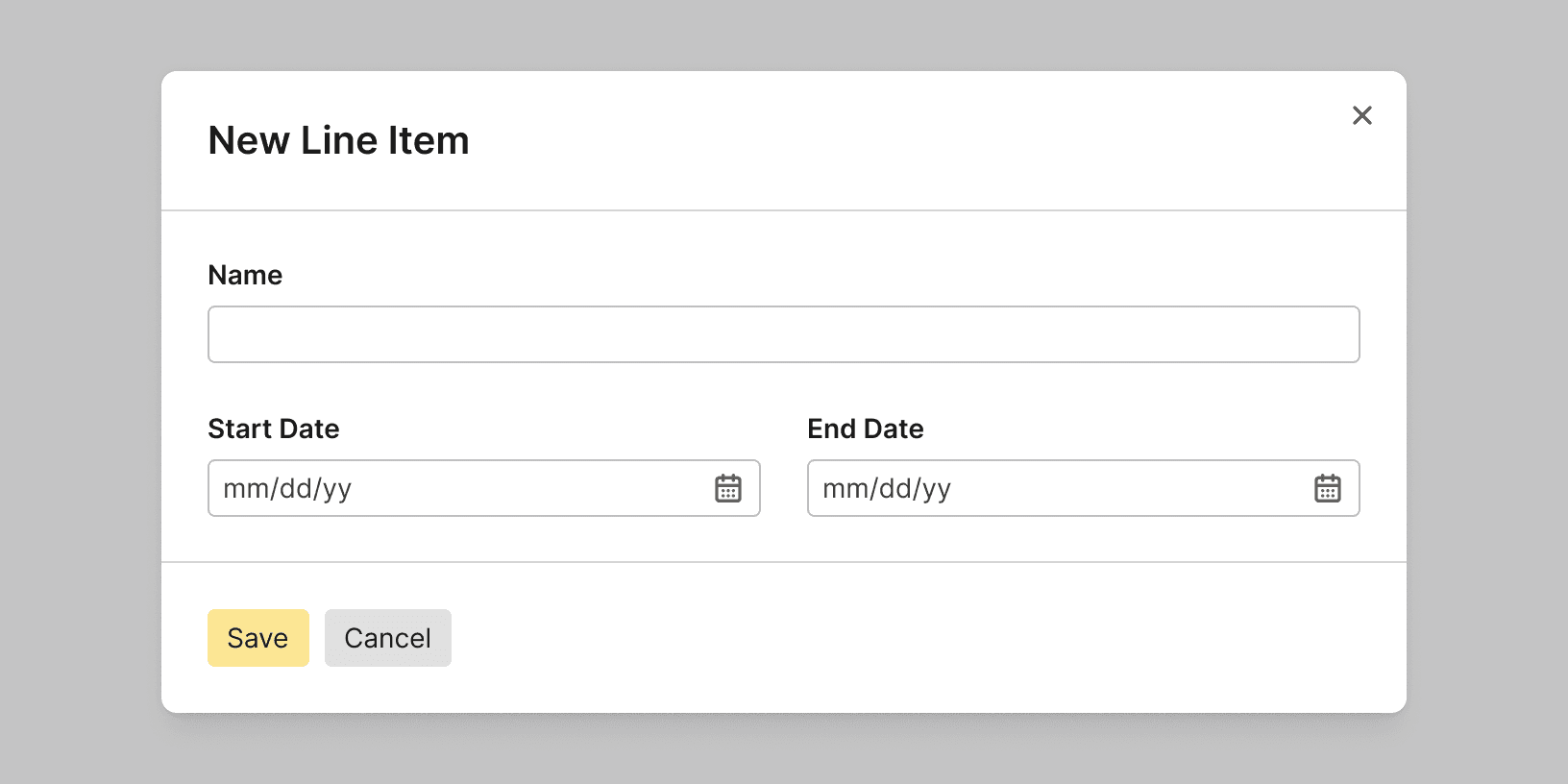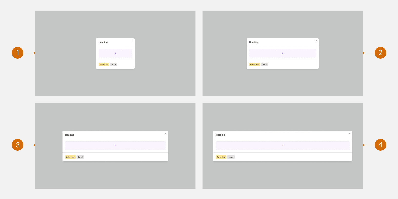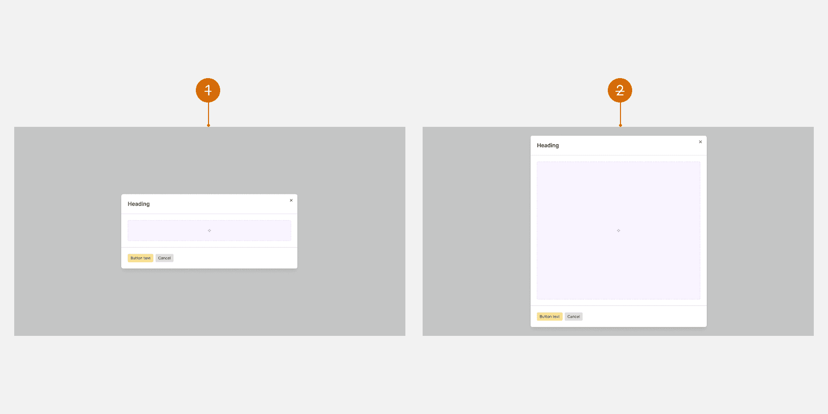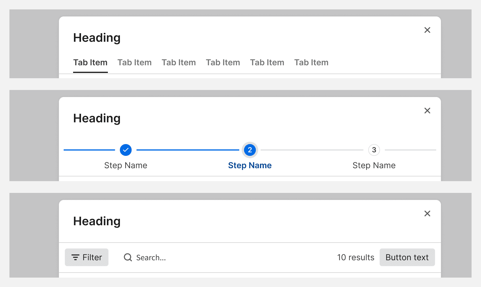 Task modals should be used for complex tasks with multiple inputs. The heading conveys the purpose of the modal and the action that users can expect to take. It should align with the button, but it doesn't have to be identical. Keep the heading as short as possible while clearly describing the modal. In general, these types of modals do not require super headers.