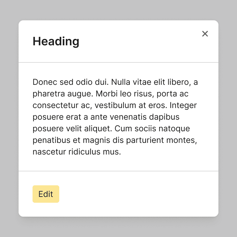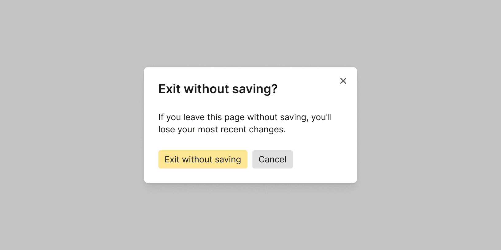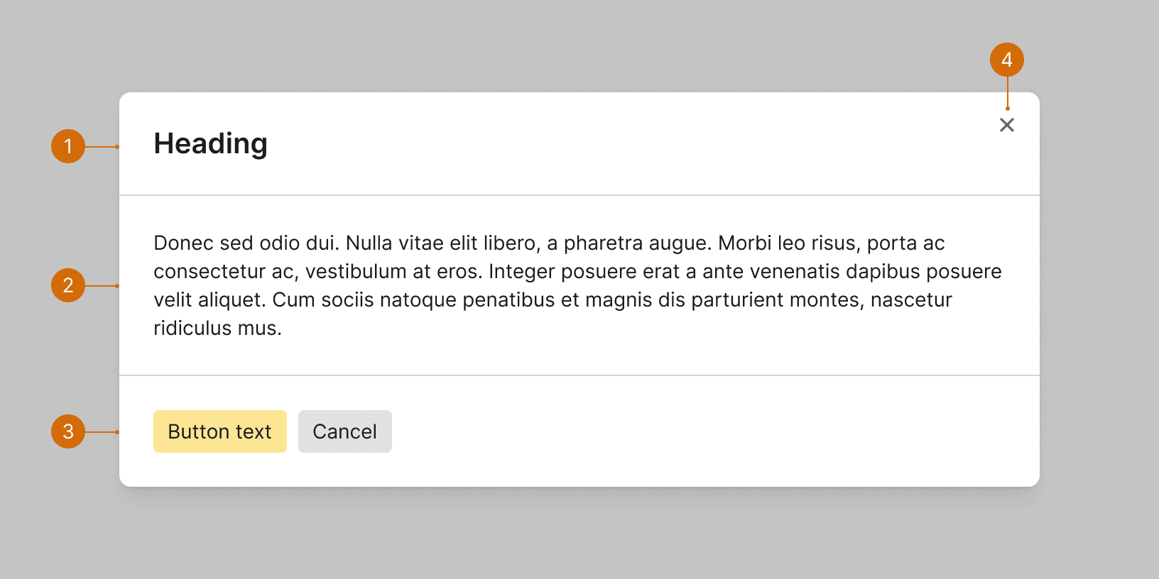 For confirmation modals, the heading should take the form of a question. See Confirmation Messages.