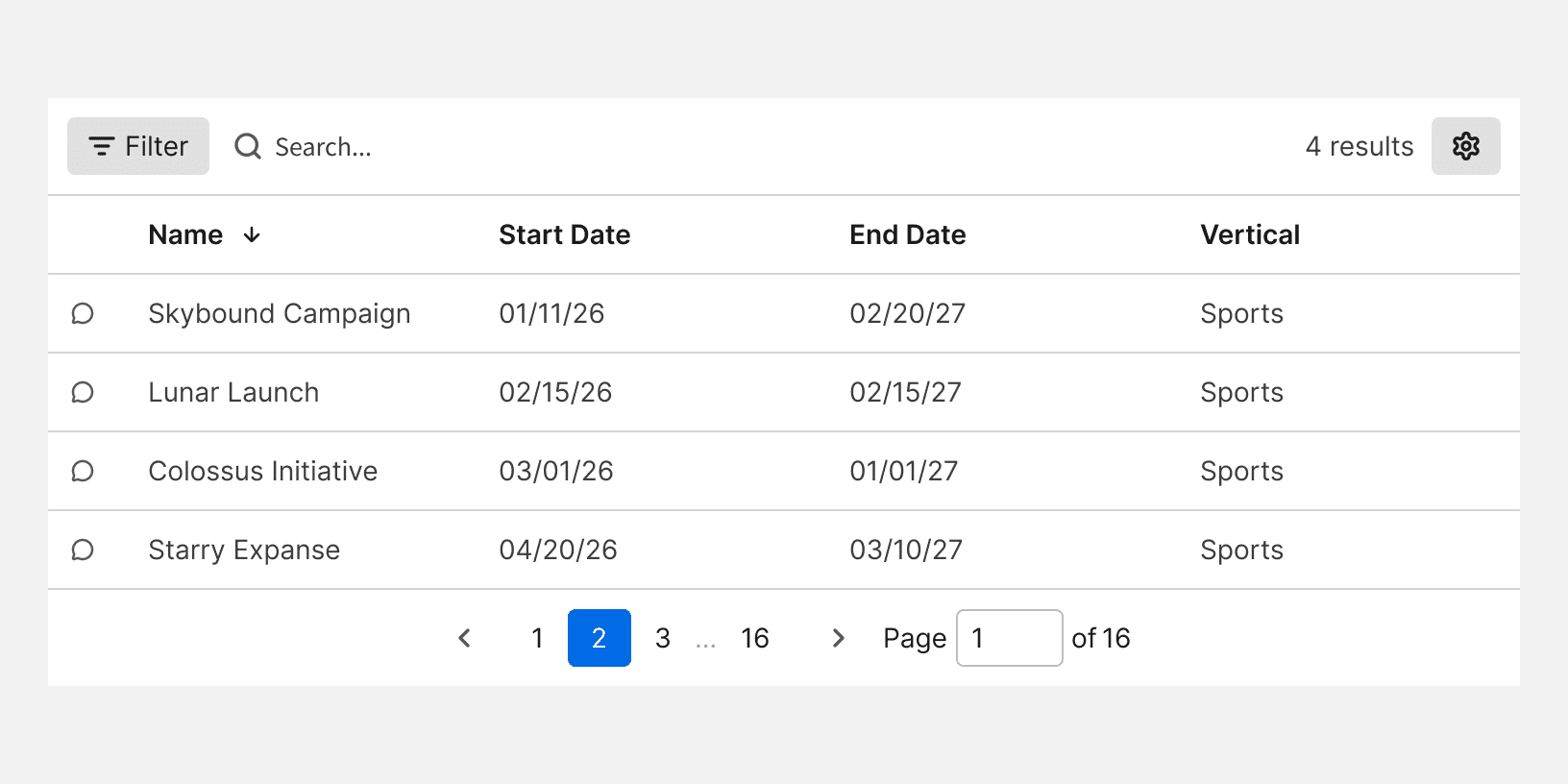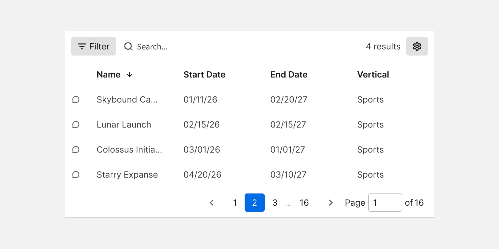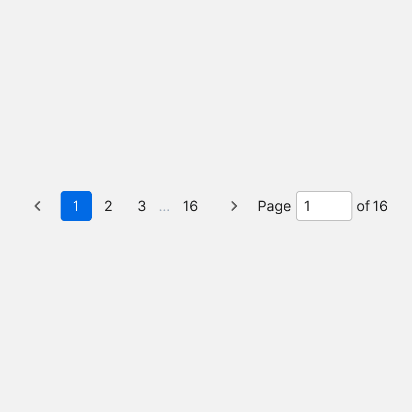 The page input allows users to quickly jump to a specific page. The user must type in a number and hit ⏎ enter. If the number is larger than the number of pages, the last page will be selected. The text to the right of the input displays the number of items you are currently viewing and the total number of items.