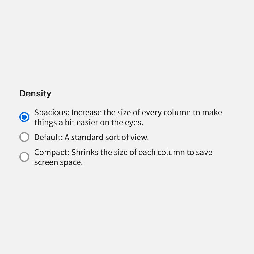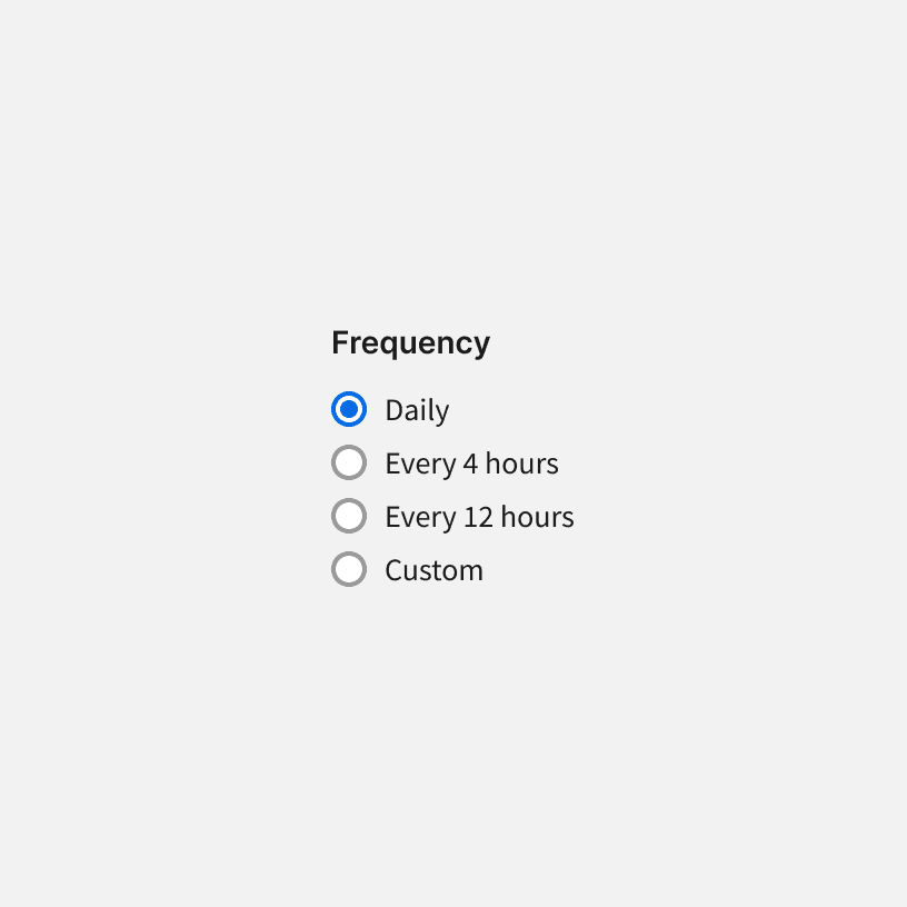 Radio labels should be short and clear. Make sure they are descriptive enough so that people understand their selection. Don't use full sentences and don't include any punctuation