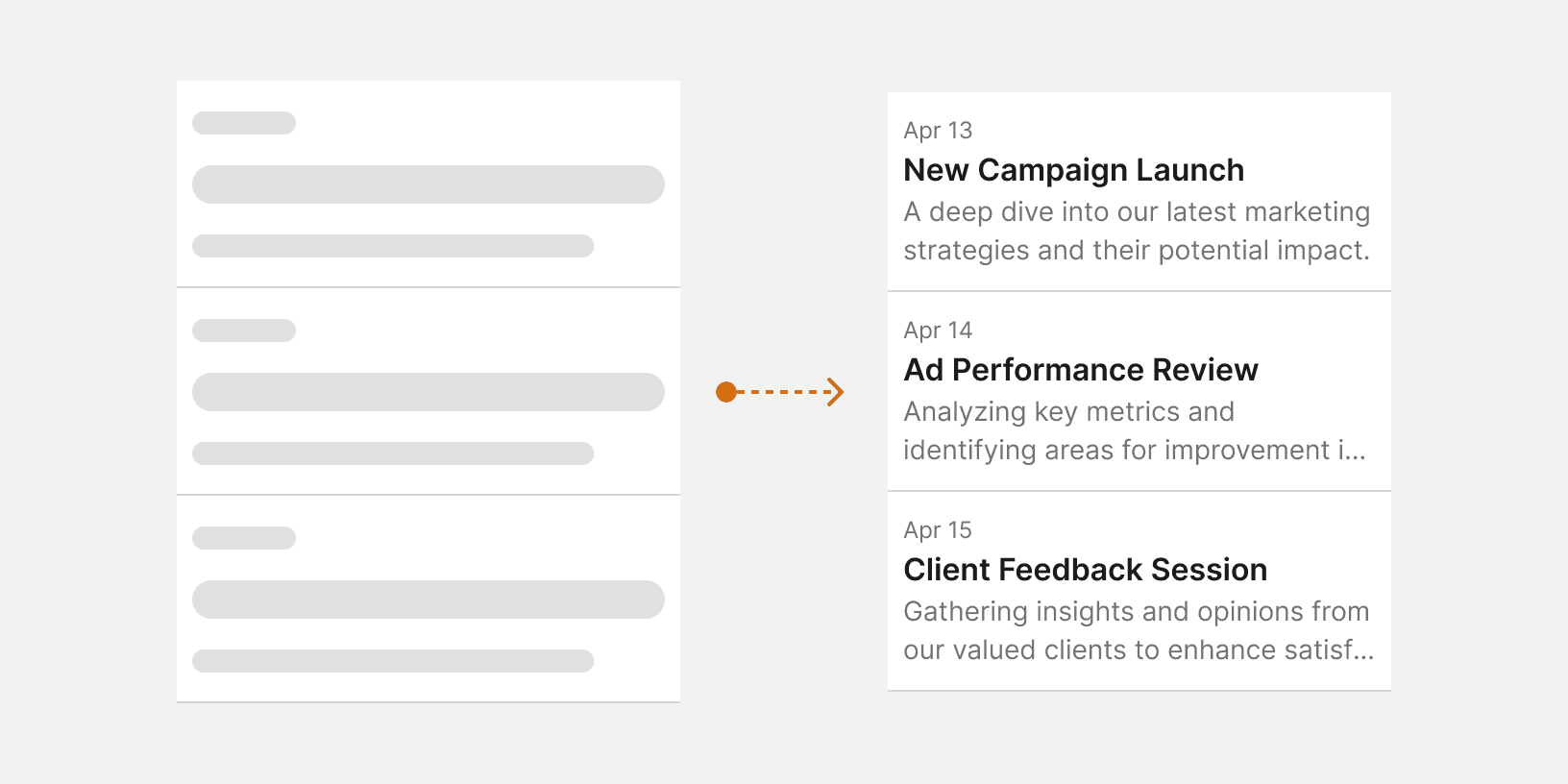 Ensure the loader accurately reflects the final layout of the elements it's replacing, including hierarchy and dimensions.²