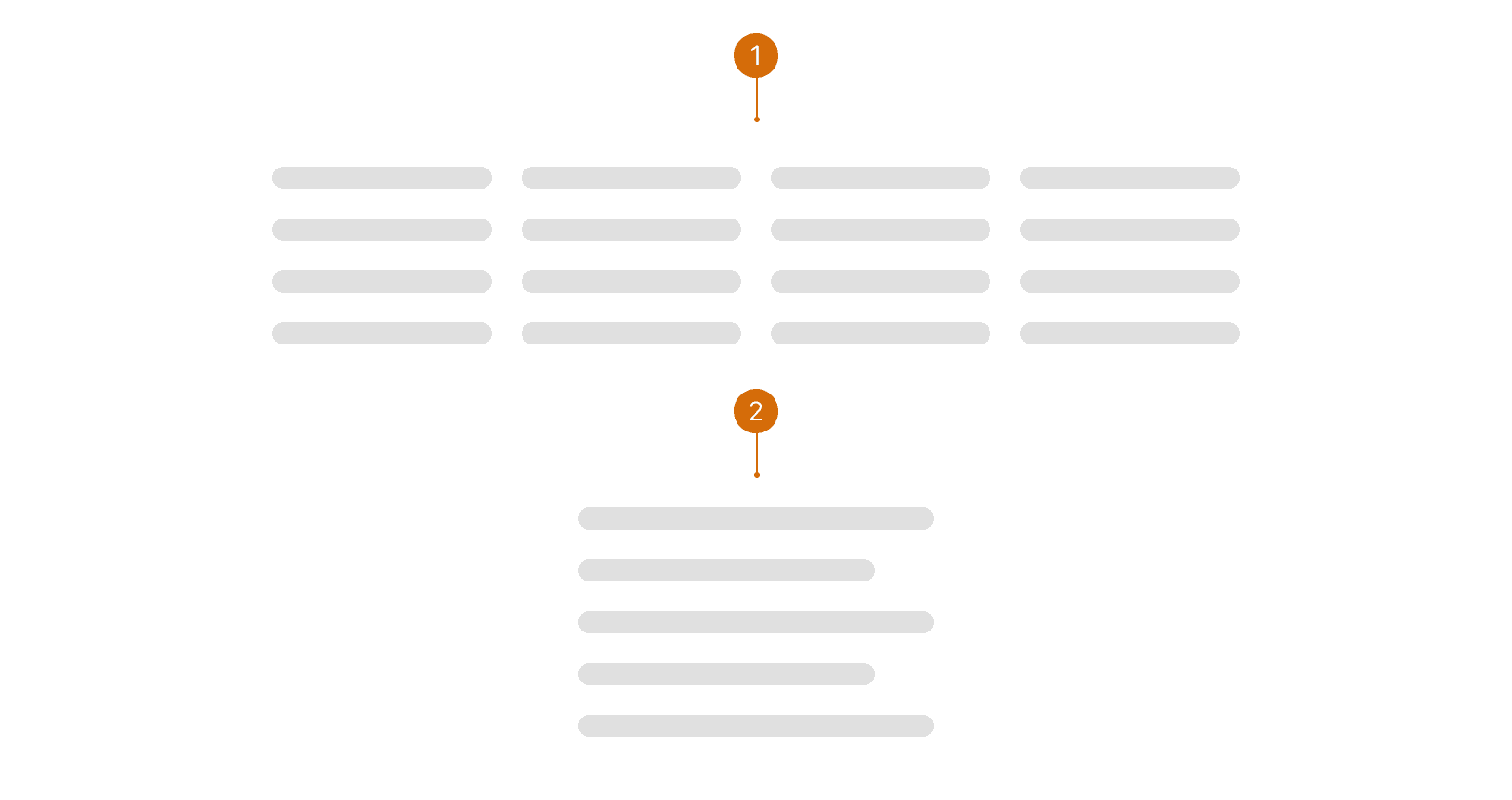 Use a skeleton loader when loading larger pieces of content such as tables or lists. Use the loader for smaller, more compact pieces of content such as cards.¹