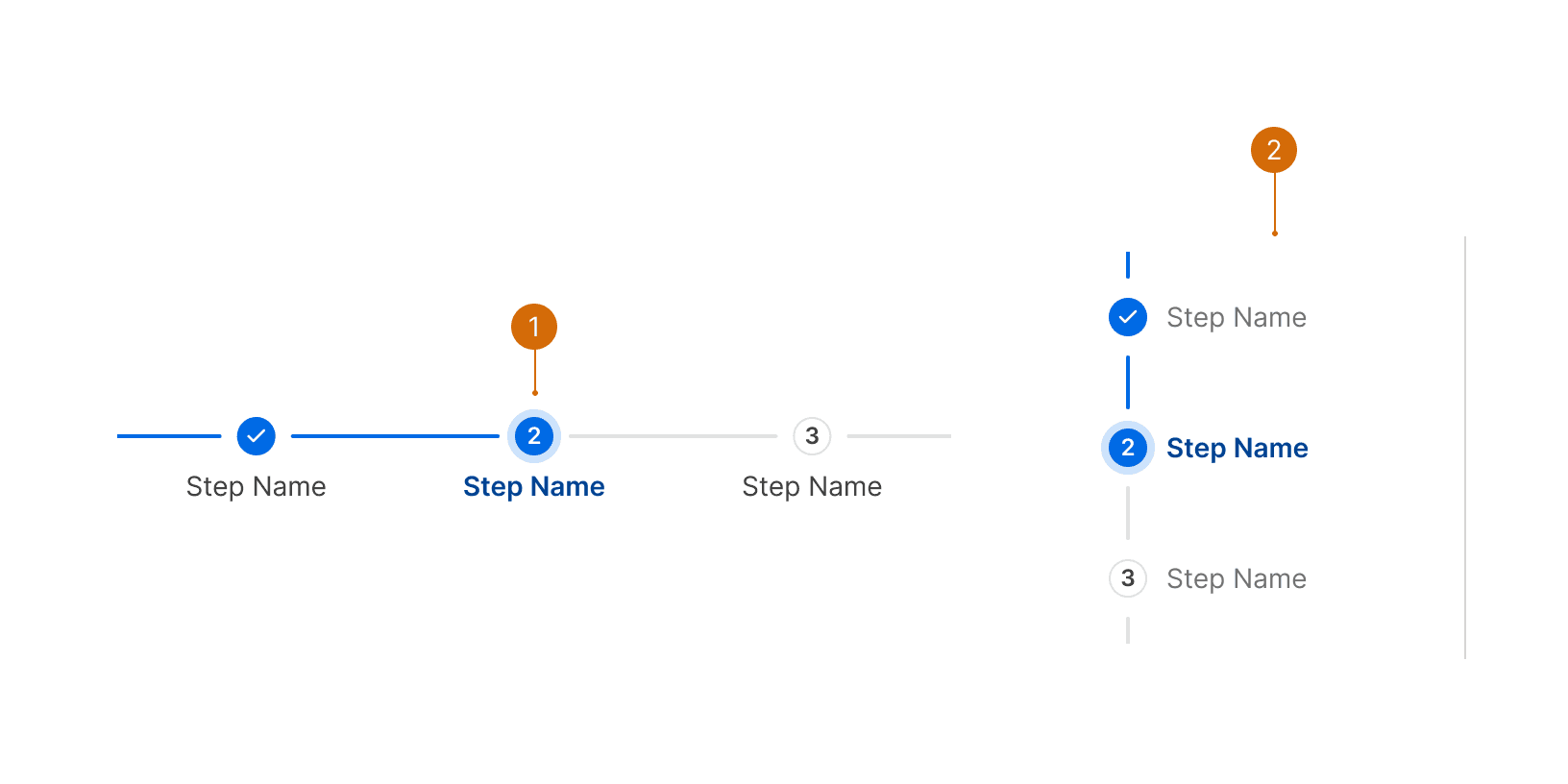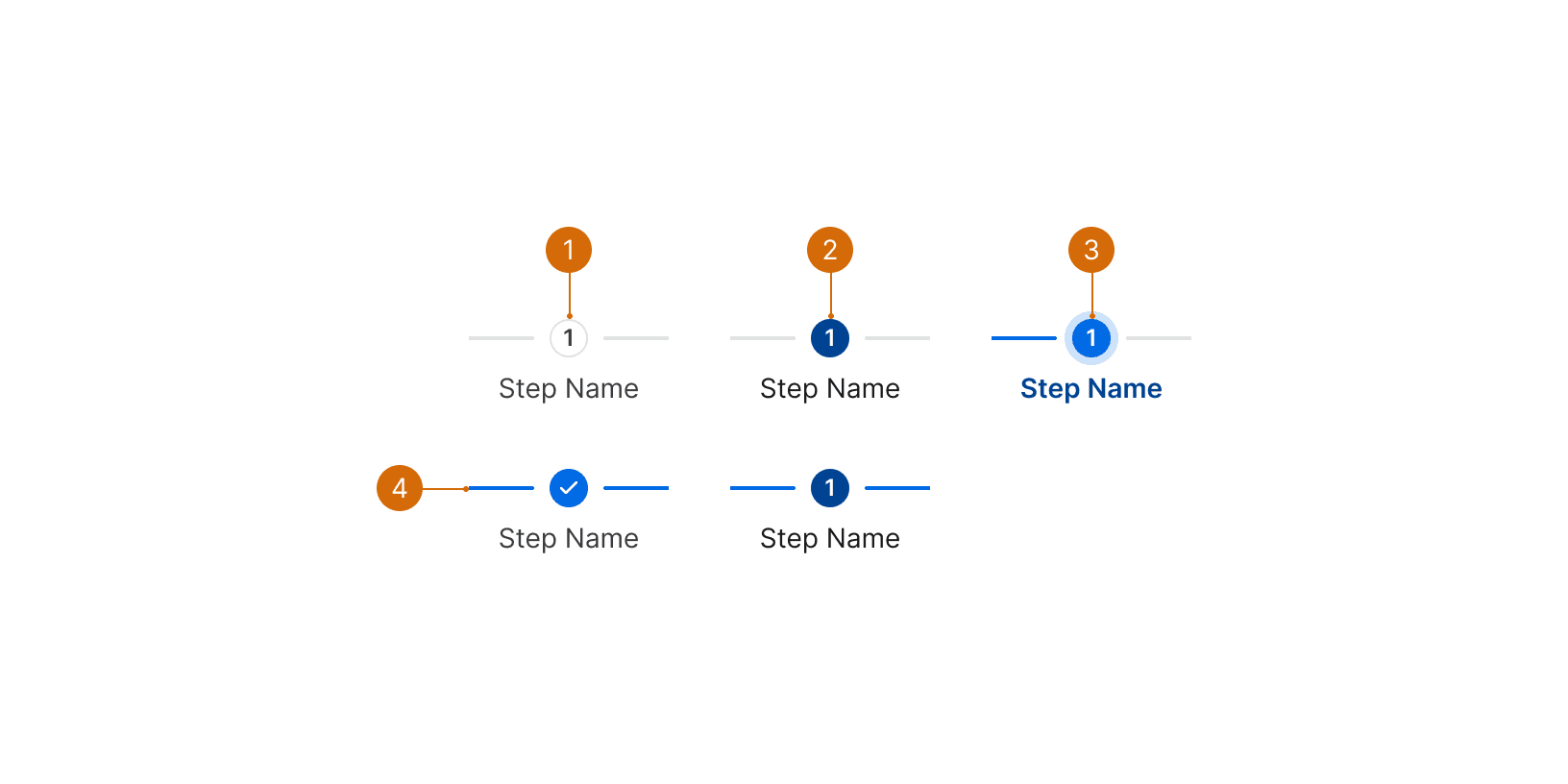 Use descriptive labels that clearly indicate what actions or options the user can expect at each step of the process. Keep labels short--two or three words maximum in most cases. Use title cases without periods, commas, or other unnecessary punctuation.