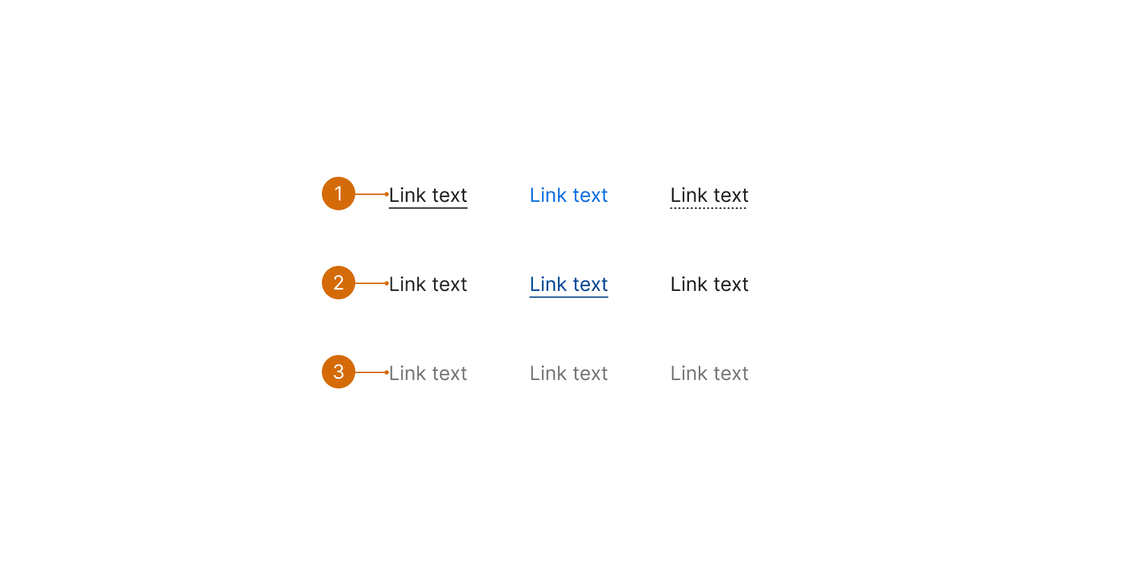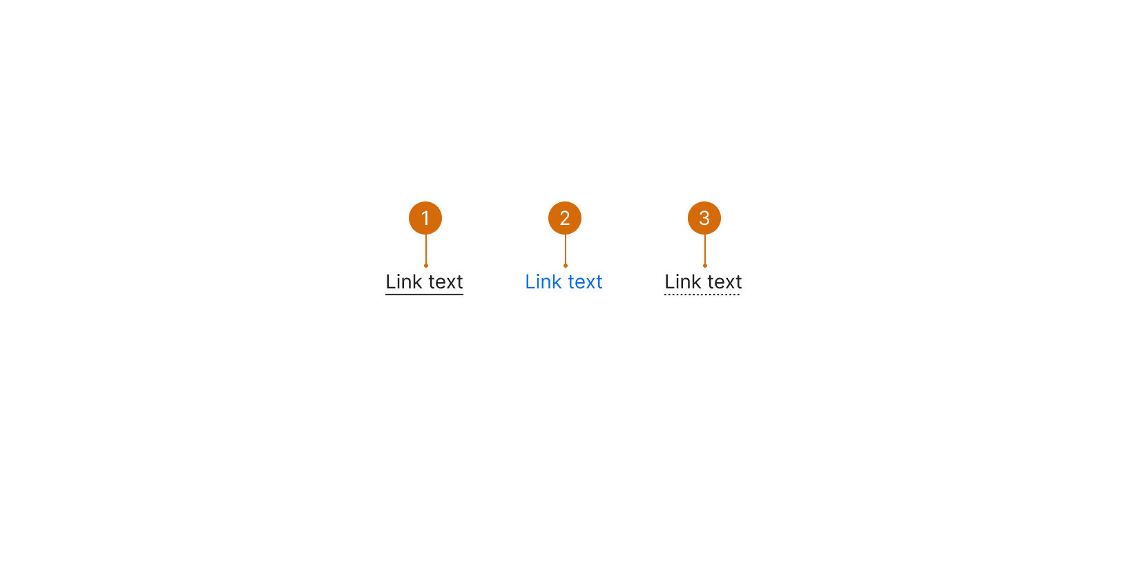 Underline Dotted: Use when you need to display a tooltip on hover, instead of navigating the user away.