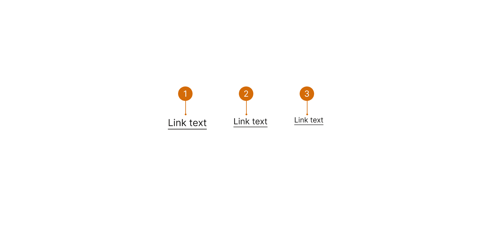 Links are primarily used for simple navigation to another page, or to an anchor within that page. Link text should be brief, and should clearly indicate what the user will be navigating to. A link is typically placed within or following a sentence, but can also be used by itself.